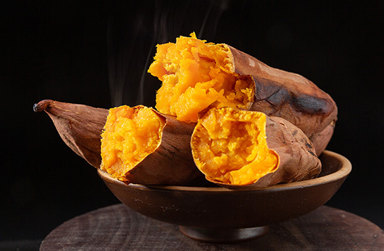 最传统的做法是用一个大圆铁皮桶,里面装着炭火,烤出香糯可口的红薯。买一个烤好的红薯用牛皮纸包好,避开渗出来的糖汁,剥开泛皱的表皮儿,便能看见里面金灿灿、软绵绵、热腾腾的薯心,吹口气咬上一口,让香甜的红薯在嘴里化开,真是甜而不腻,越吃越香。