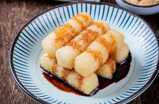 传统糍粑是将蒸熟的糯米放在石质的凹槽里用专门的木锤捶打而成的。手工打糍粑很费力,但这样打出来的糍粑柔韧鲜滑,口感极好。