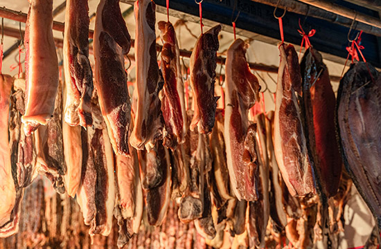 小雪时节天气开始变得寒冷干燥,气温也很快降低,正是民间加工腊肉、腌制咸菜的最佳时机。农家开始着手制作腊肉、香肠,将吃不了的肉类用传统方法储藏起来,以便等到春节期间再食用。